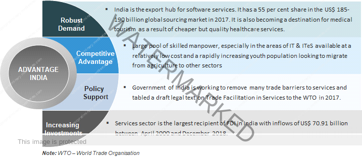 குறைந்த விகிதத்தில் அதிக தகுதி வாய்ந்த திறமை குணம் கிடைப்பது மூன்று நாடுகளுக்கு 60 லிருந்து 70 சதவீத செலவை குறைக்க உதவுகிறது தகுதி வாய்ந்த திறமையான பணியாளர்களின் இந்த பெரிய குழு கடந்த 5 ஆண்டுகளில் இந்திய தகவல் தொழில்நுட்ப நிறுவனங்களுக்கு வாடிக்கையாளர்களுக்கு 200 பில்லியன் அமெரிக்க டாலராக சேமிக்க உதவியது. இந்திய பொருளாதாரத்தின் வளர்ச்சியில் தகவல் தொழில்நுட்பம் சேவைகளின் பெரும் பங்களிப்பால் ஊக்குவிப்பு மற்றும் மேம்பாட்டிற்கான ஒரு முக்கியமான சேவையாக அரசாங்கம் அங்கீகரித்துள்ளது