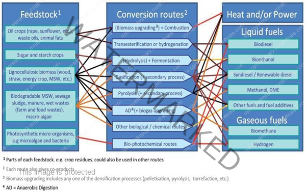 The conversion technologies from biomass are based on type of biomass (different physical nature and chemical composition of the biomass), and required energy form (Heat, Power, Transport Fuel). The conversion of biomass to energy is mainly by means of