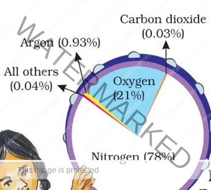 The atmosphere is composed of gases, water vapour and dust particles. The proportion of gases changes in the higher layers of the atmosphere in such a way that oxygen will be almost in negligible quantity at the height of 120 km. Similarly, carbon dioxide and water vapour are found only up to 90 km from the surface of the earth.
