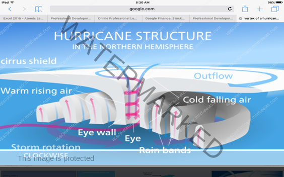 - Around the eye is the eyewall, where there is a strong spiraling rise of air to a greater height reaching the tropopause.
