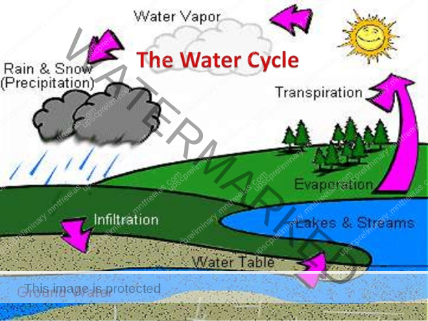 The moisture in the atmosphere is derived from water bodies through evaporation and from plants through transpiration. Thus, there is a continuous exchange of water between the atmosphere, the oceans and the continents through the processes of evaporation, transpiration, condensation and precipitation.