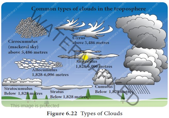 As the clouds are formed at some height over the surface of the earth, they take various shapes. According to their height, expanse, density and transparency or opaqueness clouds are grouped under four types: