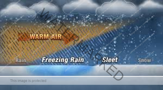 Sleet is frozen raindrops and refrozen melted snow-water. When a layer of air with the temperature above freezing point overlies a subfreezing layer near the ground, precipitation takes place in the form of sleet.