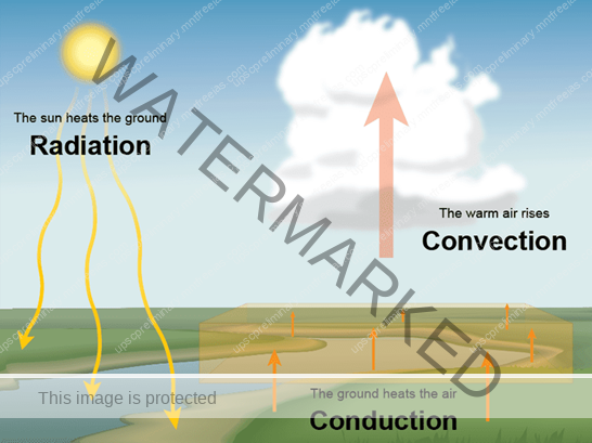 The air in contact with the earth rises vertically on heating in the form of currents and further transmits the heat of the atmosphere. This process of vertical heating of the atmosphere is known as convection. The convective transfer of energy is confined only to the troposphere.