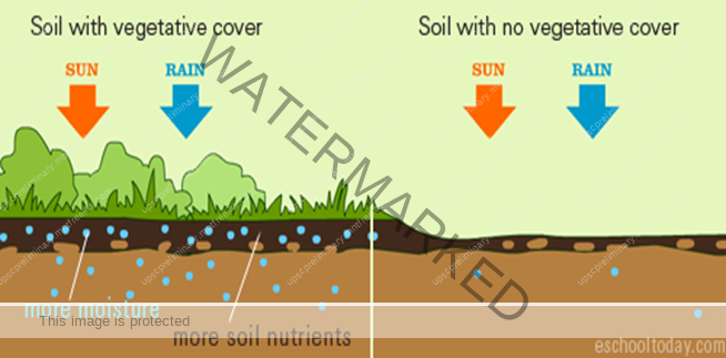 - Soil erosion on barren slopes is rampant and it hinders soil formation. Example: Chambal ravines, higher reaches of Himalayas where there is minimal or no forest cover (most on the steep southern slopes) etc.