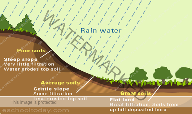 - The relief is the most important factor for soil formation in places with steep slopes like the Hilly Regions, Edges of Plateaus