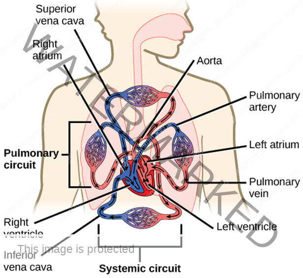 Diagram showing Pulmonary (Blue) And Systemic Circulation (Red)